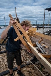 » Læs meget mere om arbejdet på Vikingeskibsmuseets bådeværft med at rekonstruere Skuldelev 5.